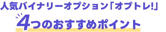 無登録営業をしている海外バイナリーオプション業者にご注意ください。バイナリーオプションというと海外の業者しかいないイメージをもたれている方がいますが、 そんな事はありません。日本にもバイナリーオプションサービスはあります。 バイナリーオプションを安全に始めるには国内大手GMOグループの提供する「オプトレ!」がおすすめです。