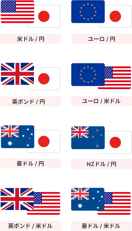 の8つの通貨ペアでお取引いただけます。